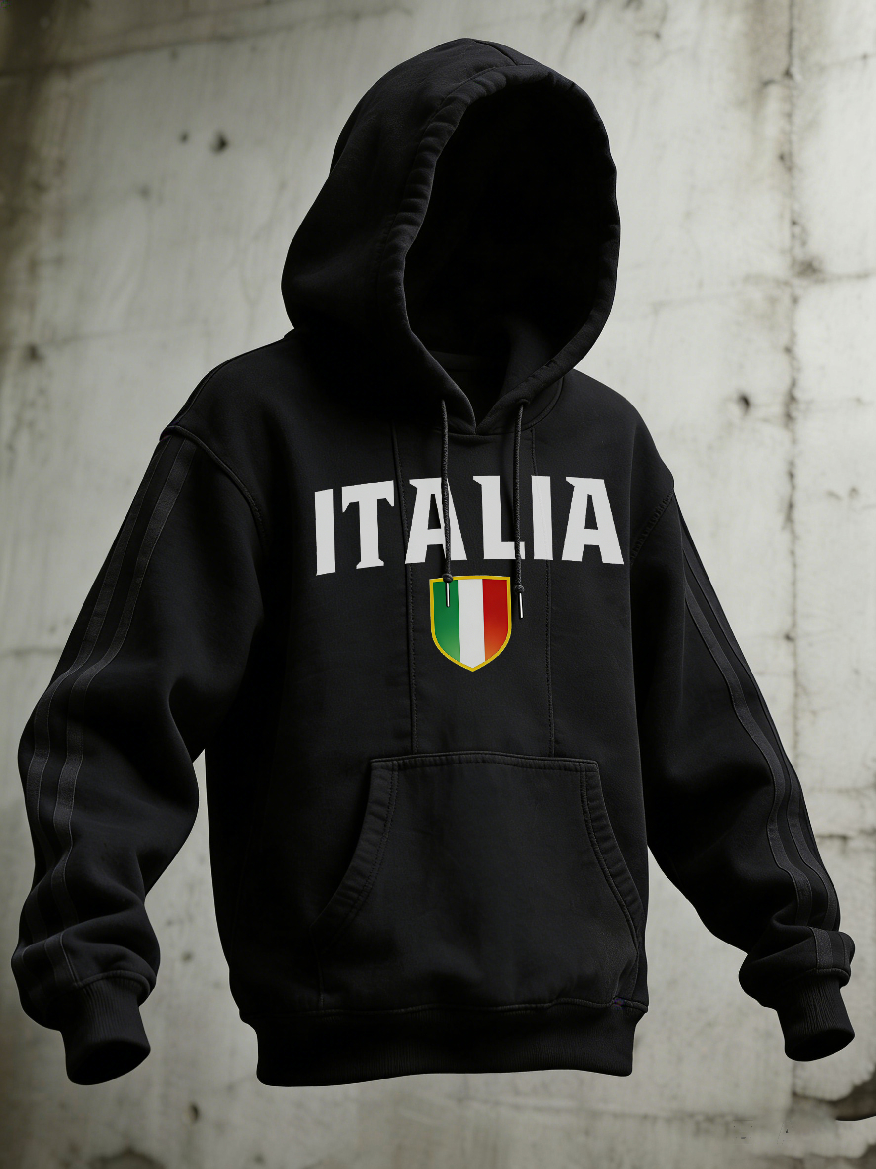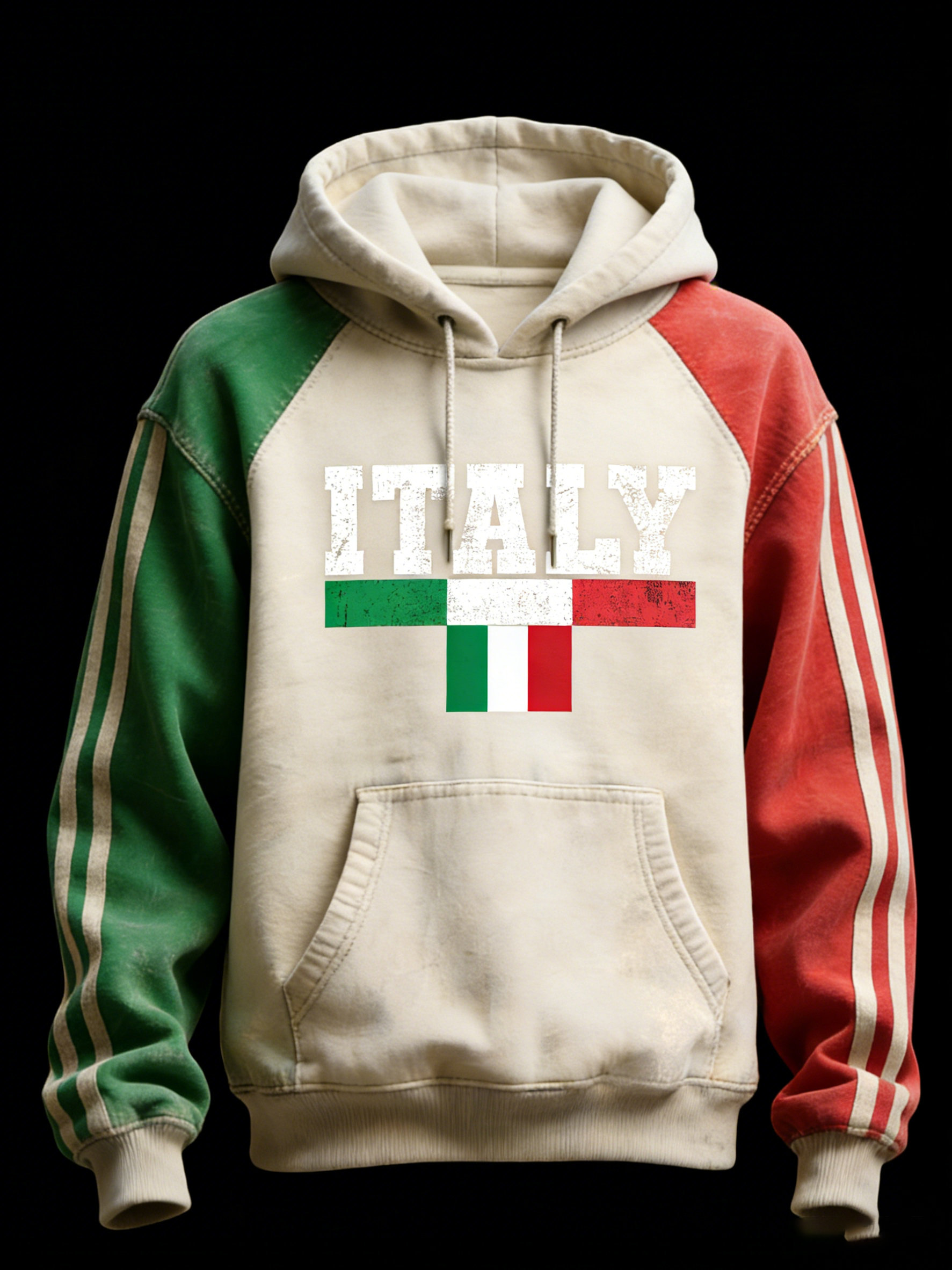 Felpa con cappuccio casual con bandiera italiana con colore a contrasto ispirato da uomo