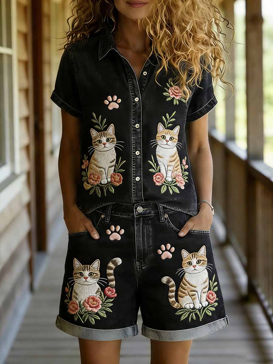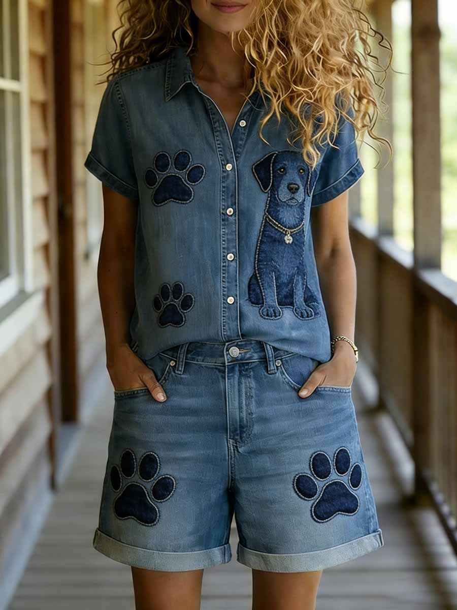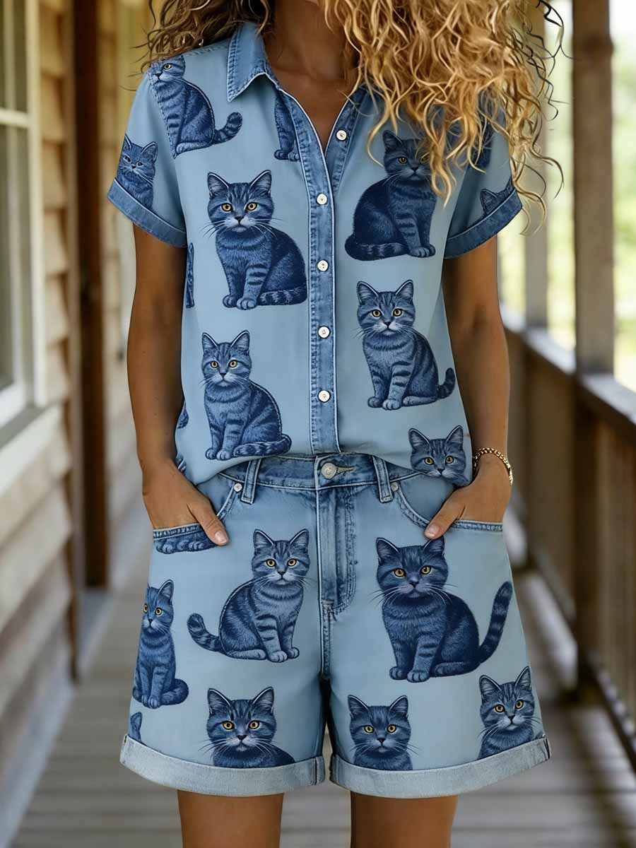Set da donna moda stampa animalier: camicia casual a maniche corte e pantaloncini