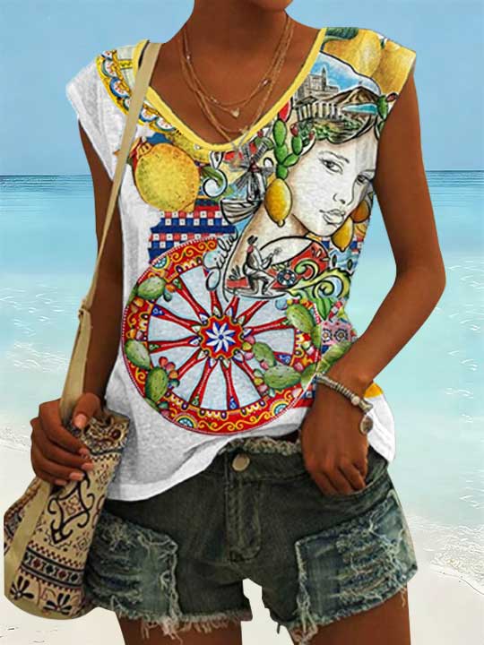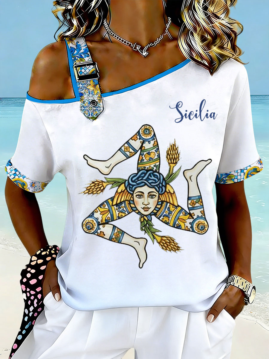 T-shirt da donna Sicilia Trinacria a spalle scoperte con maniche corte