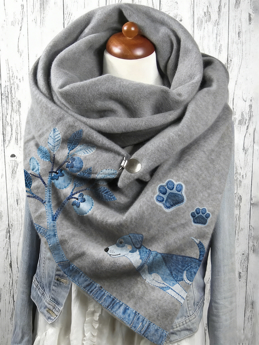 Denim Patchwork Art Dachshund Cane Modello Sciarpa