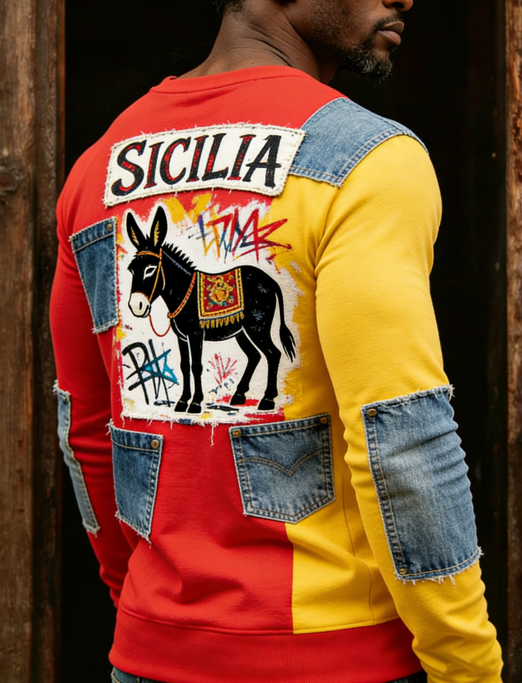 T-shirt da uomo con elementi workwear ispirati alla Sicilia e stampa artistica