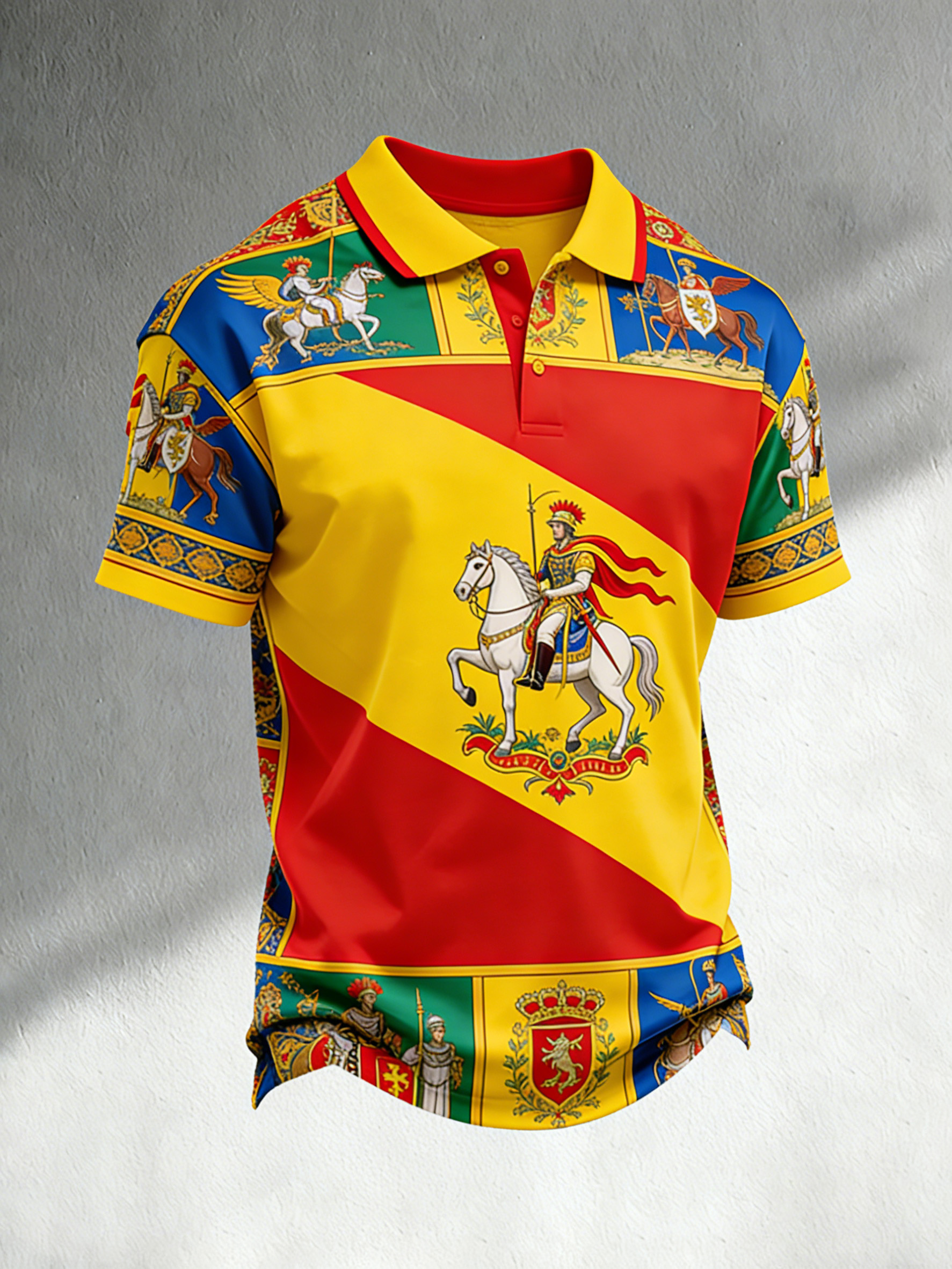Polo da uomo con stampa artistica raffigurante motivi della Trinacria siciliana