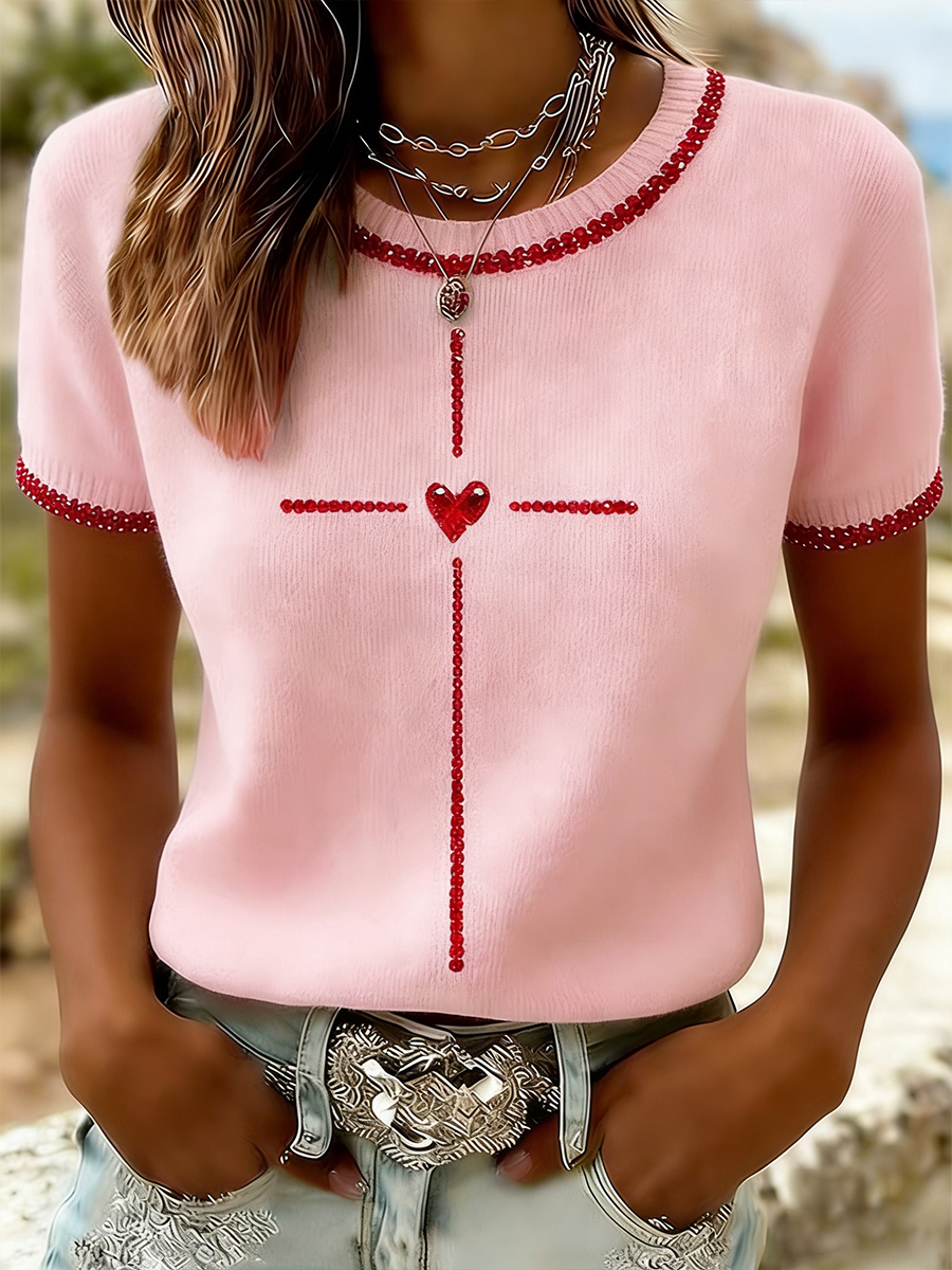 Maglietta da donna con stampa a maniche corte Faith Cross Love Heart San Valentino