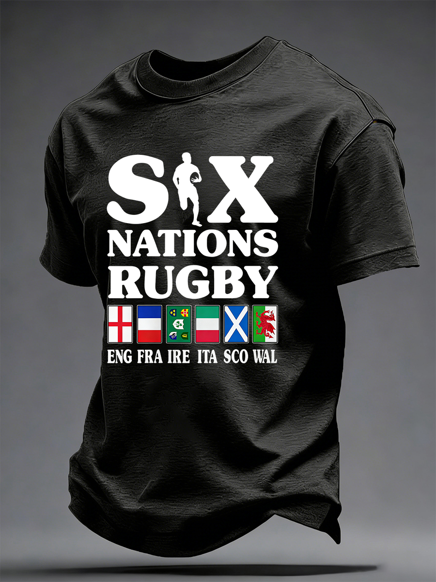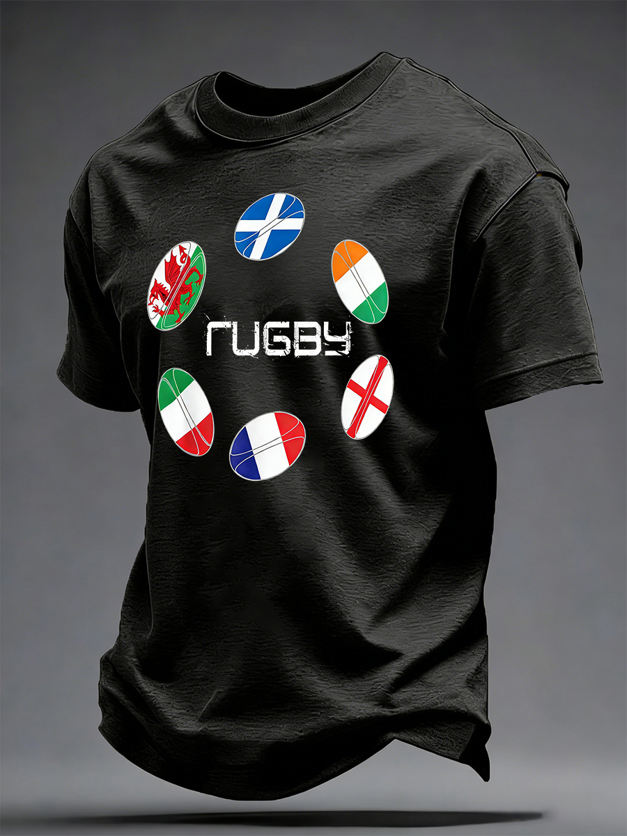 T-Shirt Uomo Con Stampa a Tema Campionato Sei Nazioni di Rugby