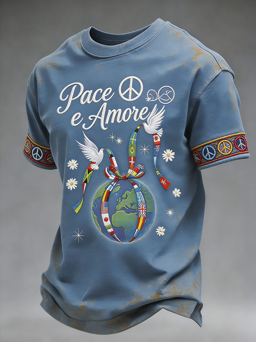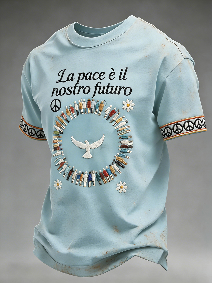 T-shirt da uomo con grafica per la pace, girocollo