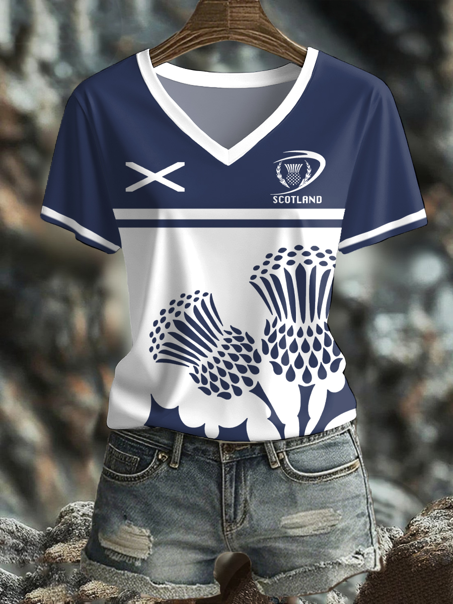 T-shirt da donna con stampa scozzese rugby