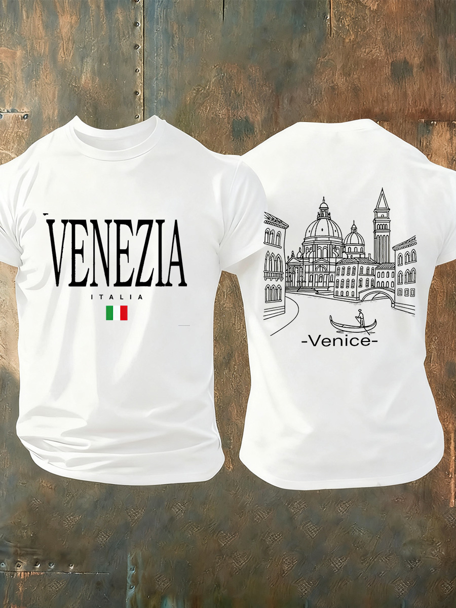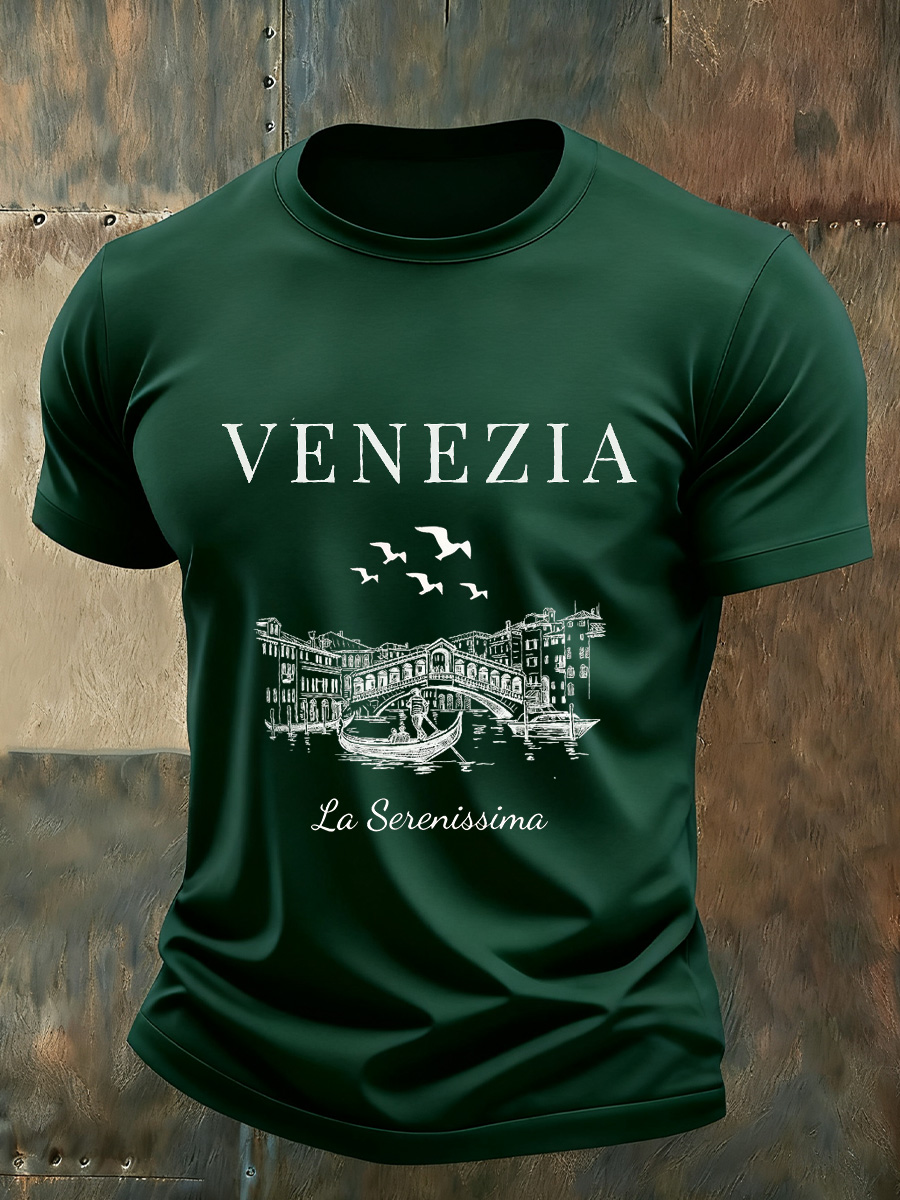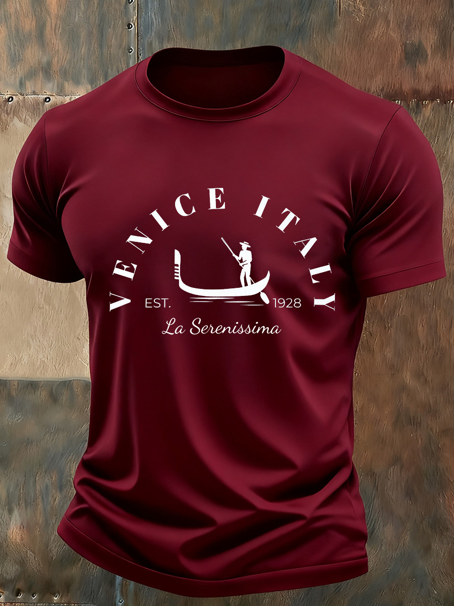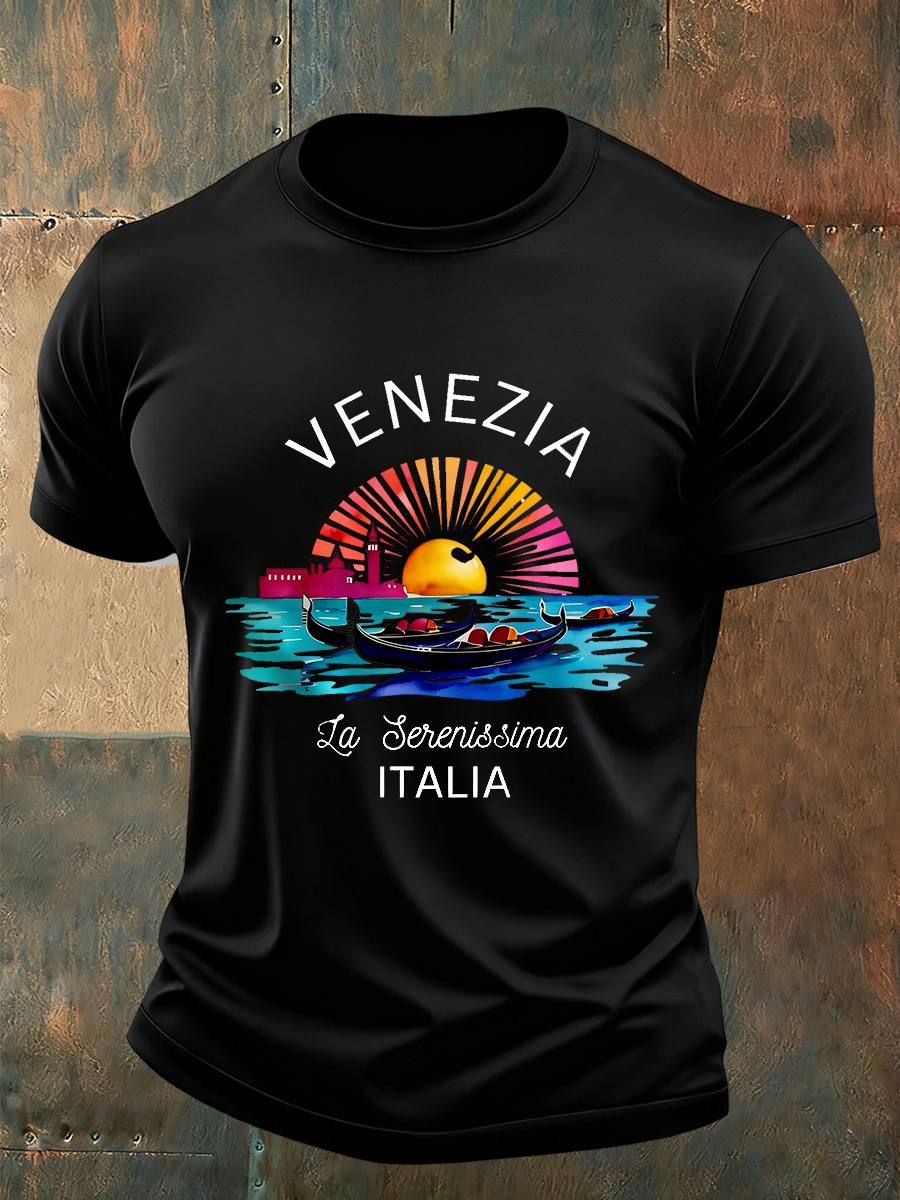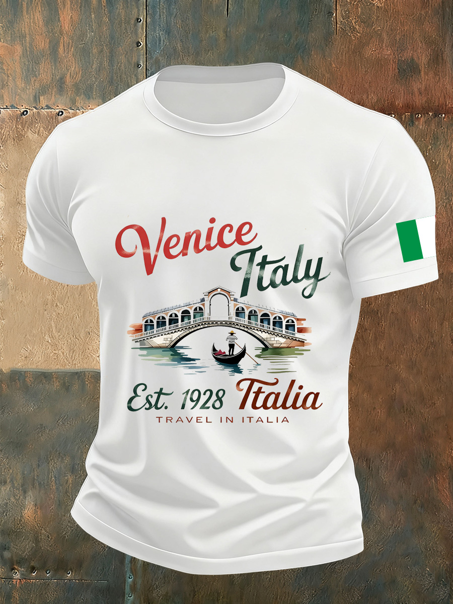 T-shirt commemorativa casual vintage con stampa artistica italiana da uomo