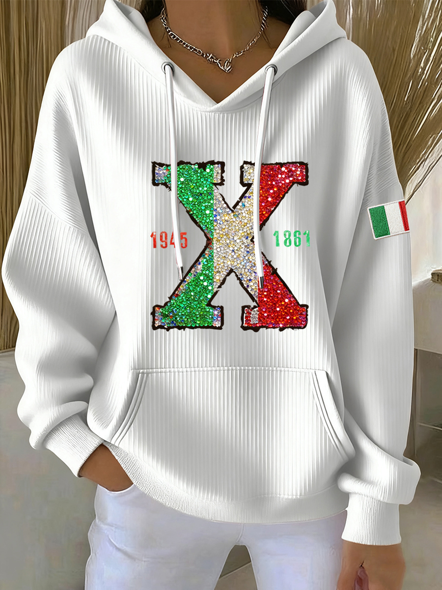 Felpa con cappuccio casual stampata da donna