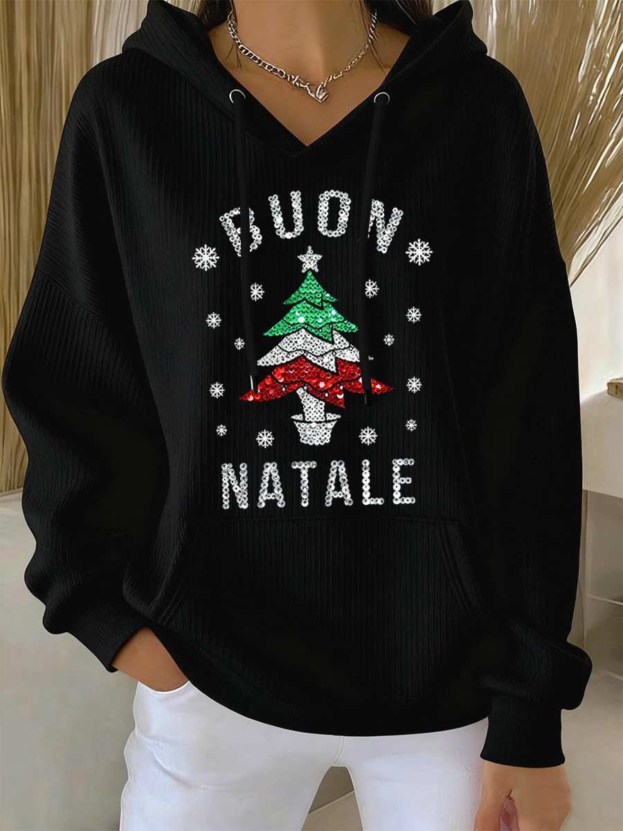 Felpa con cappuccio casual con stampa natalizia da donna