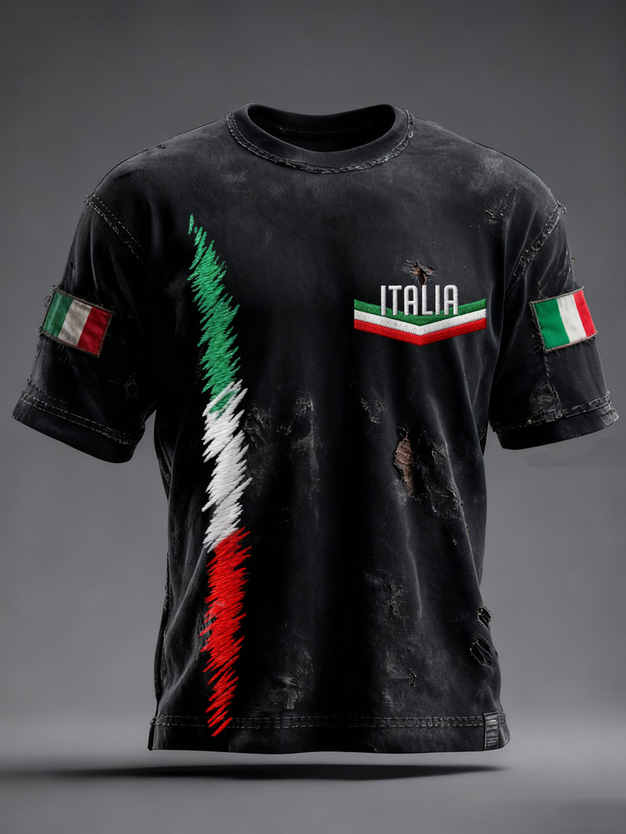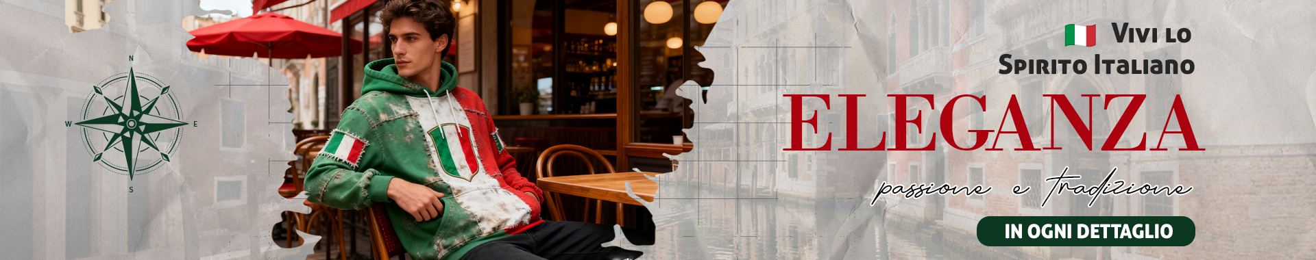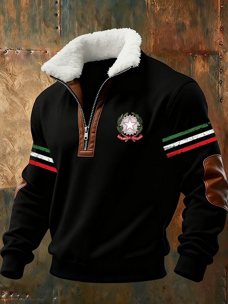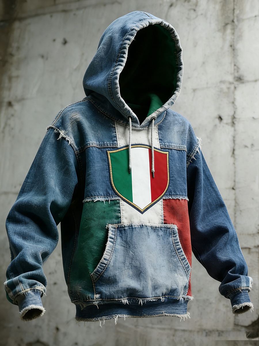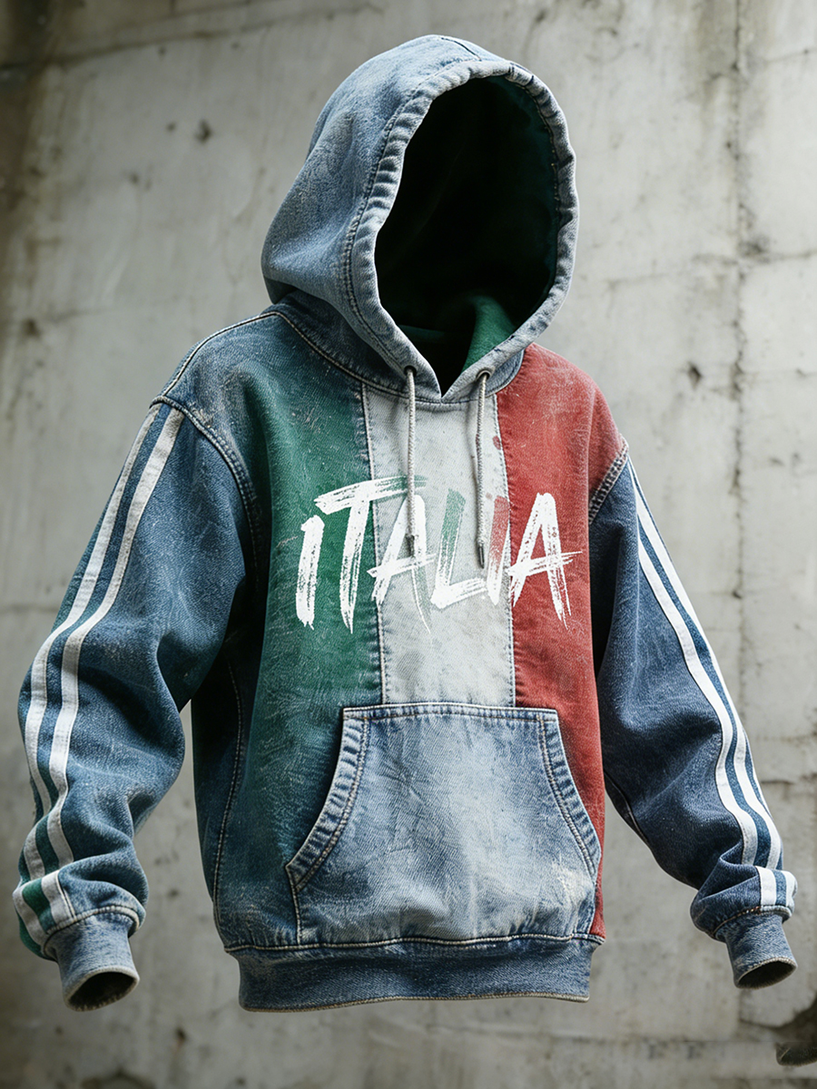 Felpa con cappuccio casual con bandiera italiana con colore a contrasto ispirato da uomo