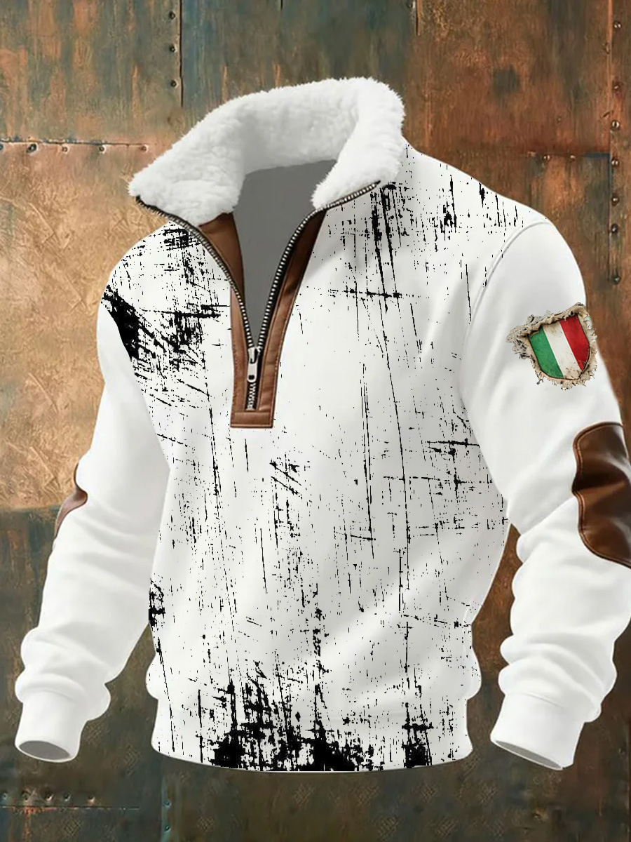 Felpa vintage patchwork con ispirazione italiana da uomo