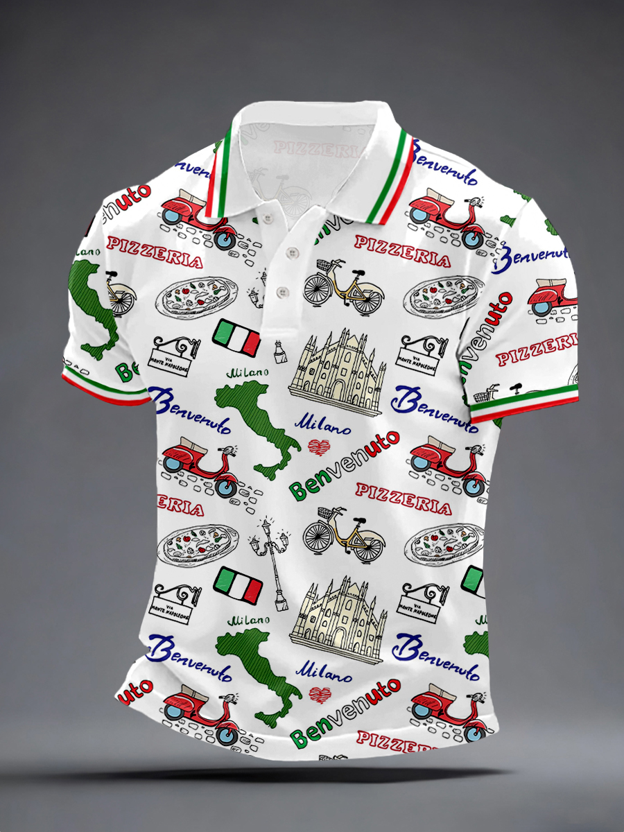 Polo uomo con stampa italiana ispirata