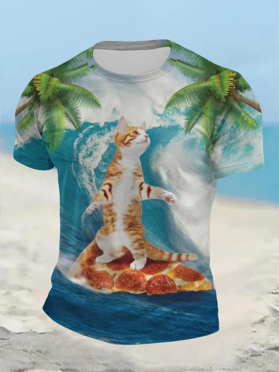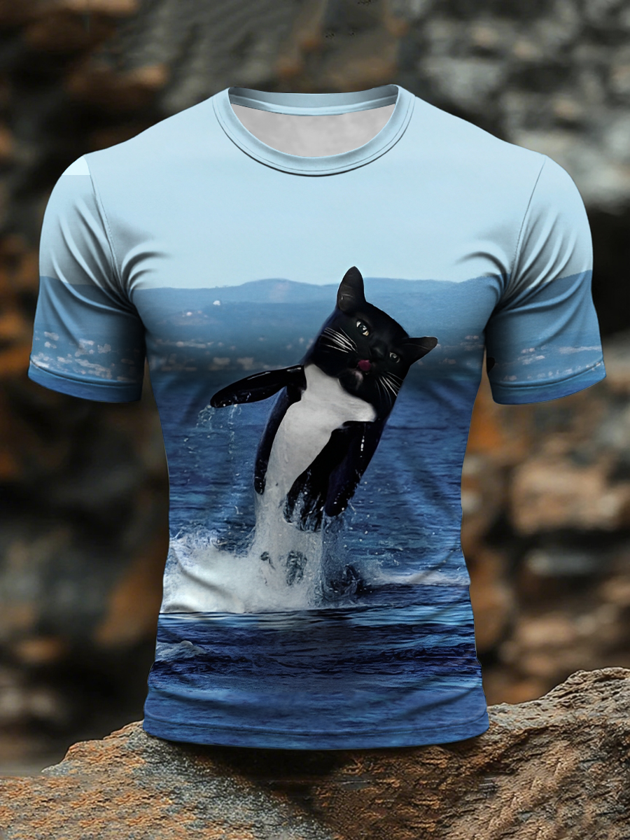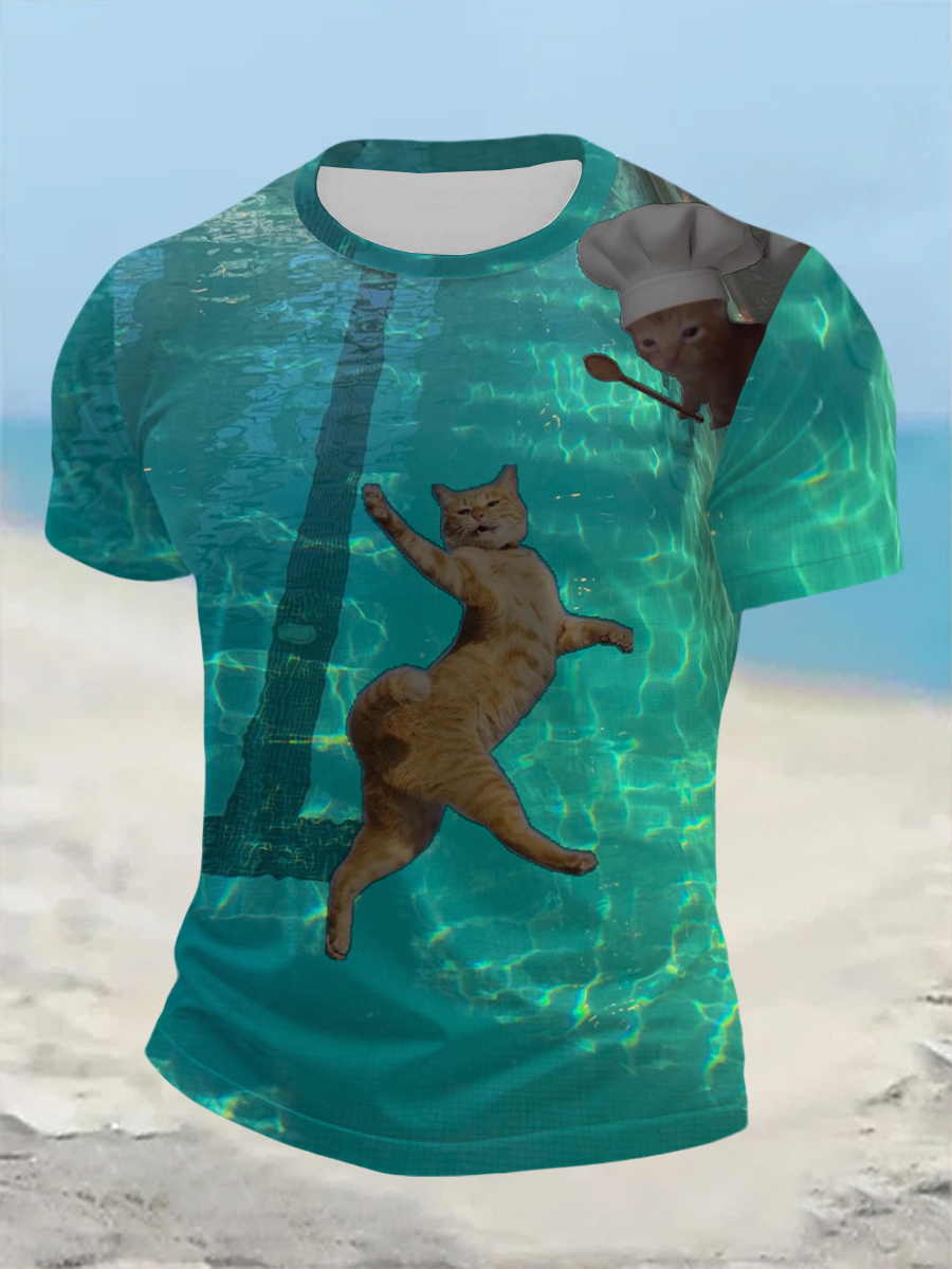 Maglietta estiva a manica corta con gatto divertente da uomo
