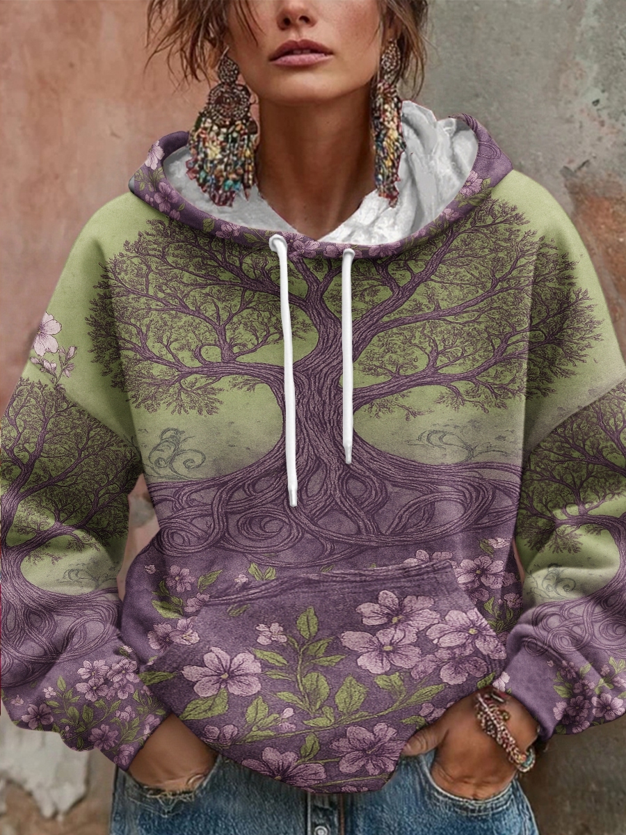 Felpa con cappuccio floreale da donna Viking Tree of Life Gradient Plant