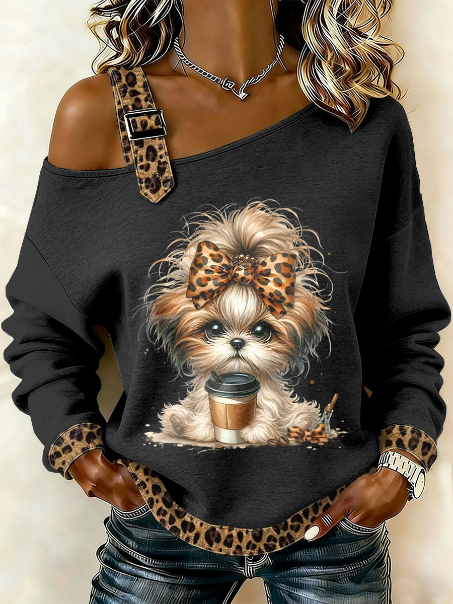 Felpa con spalle spalle al largo stampata casual con patchwork in stile retrò da donna