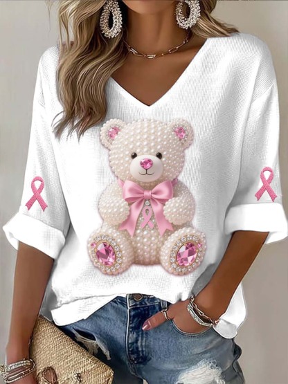Maglietta vintage a manica lunga in cotone stampa astratta Perle d'orso con stampa astratte