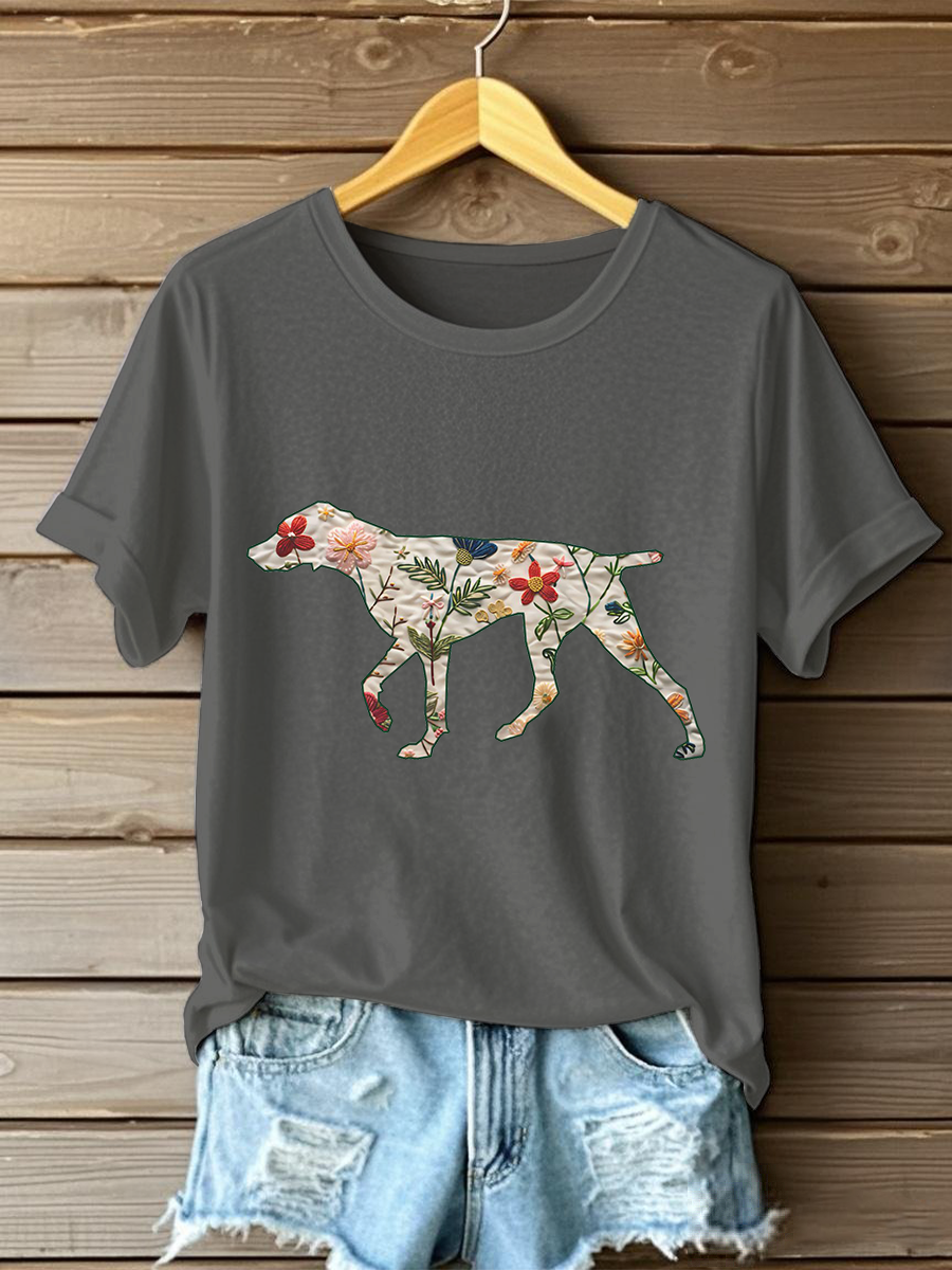 T-shirt casual da donna con stampa puntatore a pelo corto tedesco