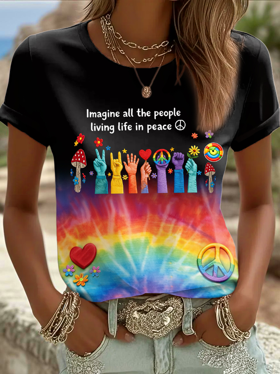 T-shirt da donna con stampa: Immagina tutte le persone che vivono in pace